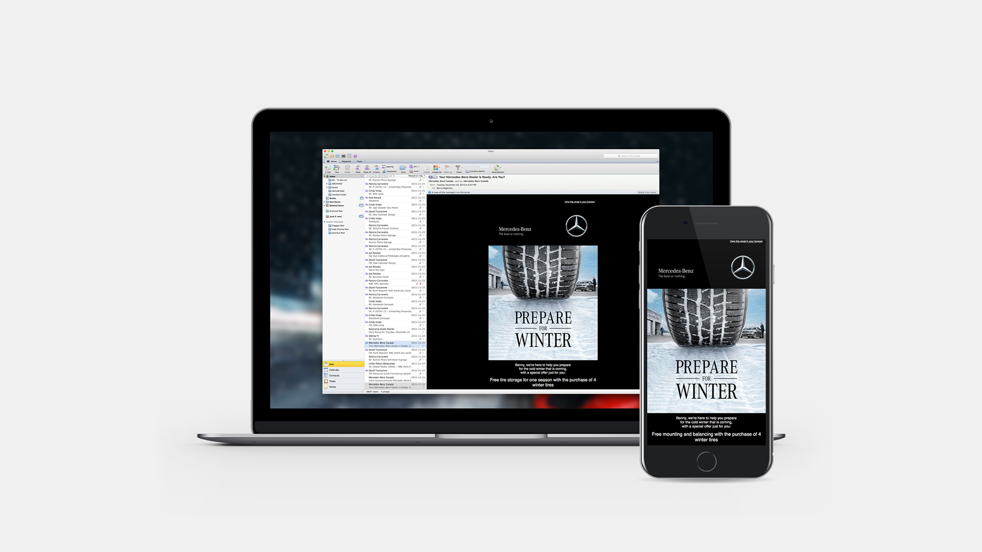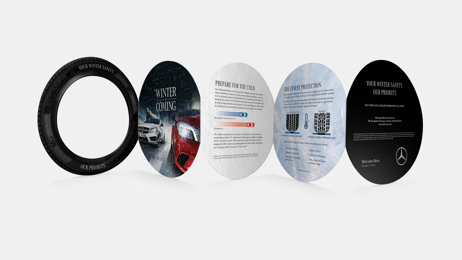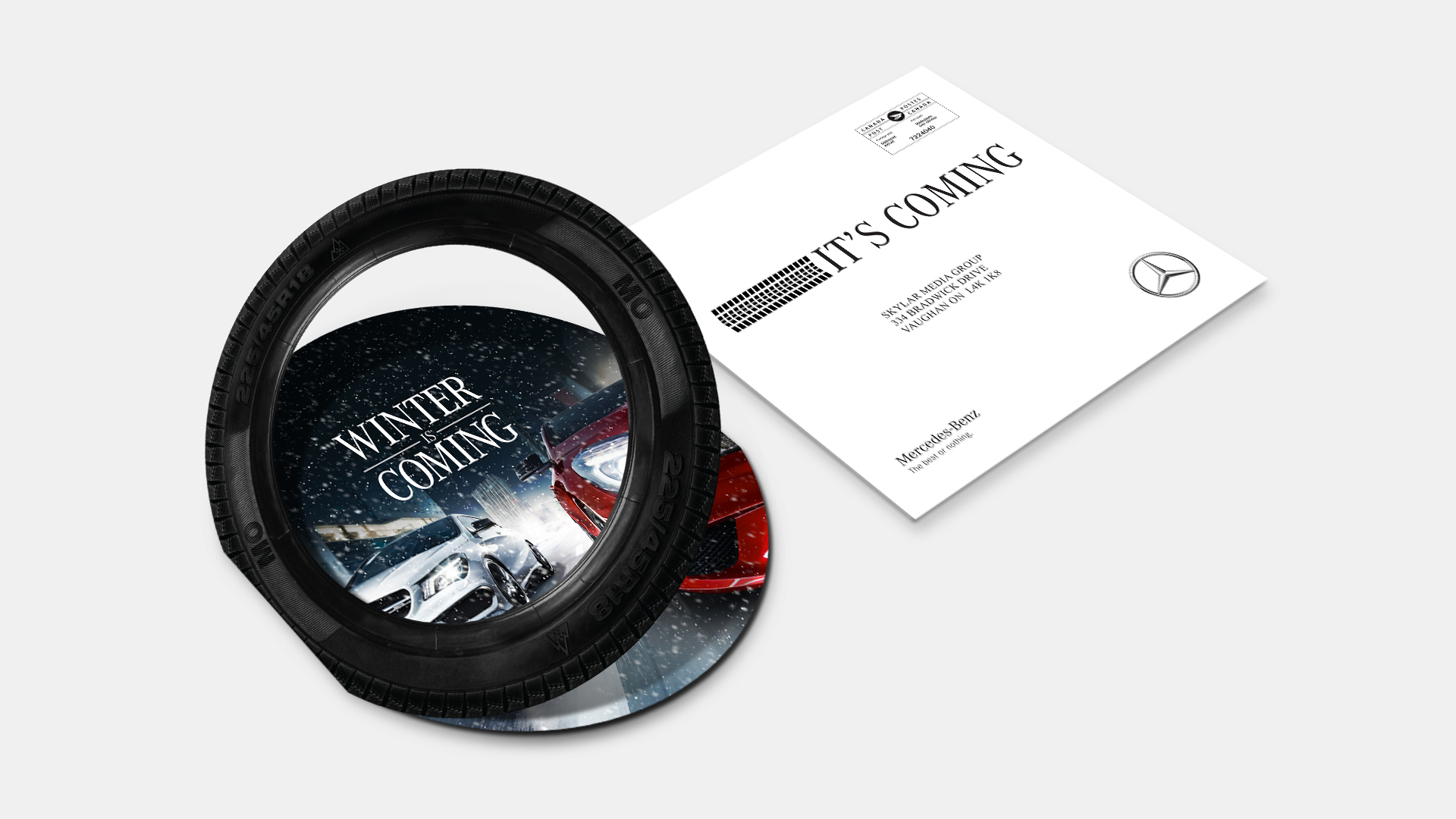 The ‘Winter is Coming’ Campaign was created to get Mercedes-Benz car owners to purchase genuine Mercedes-Benz winter tires. The idea behind the tagline was playing off the hype of the HBO series Game of Thrones and the need to be prepared for a hard winter. The campaign would be sent out through direct mail as well as e-blasts sent to all Mercedes-Benz customers providing them information on the differences between Mercedes-Benz Approved Tires versus after-market tires.