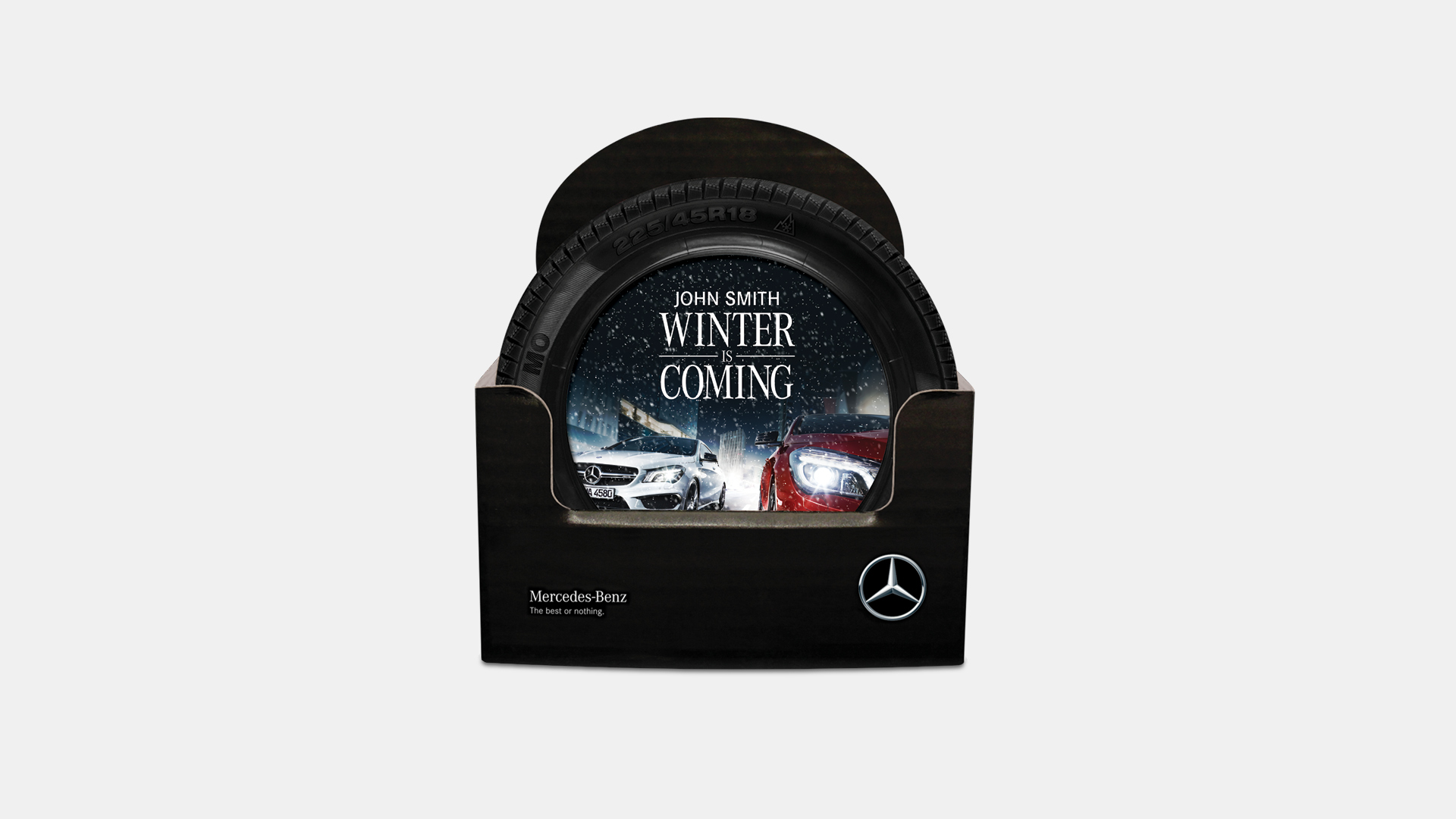 The ‘Winter is Coming’ Campaign was created to get Mercedes-Benz car owners to purchase genuine Mercedes-Benz winter tires. The idea behind the tagline was playing off the hype of the HBO series Game of Thrones and the need to be prepared for a hard winter. The campaign would be sent out through direct mail as well as e-blasts sent to all Mercedes-Benz customers providing them information on the differences between Mercedes-Benz Approved Tires versus after-market tires.
