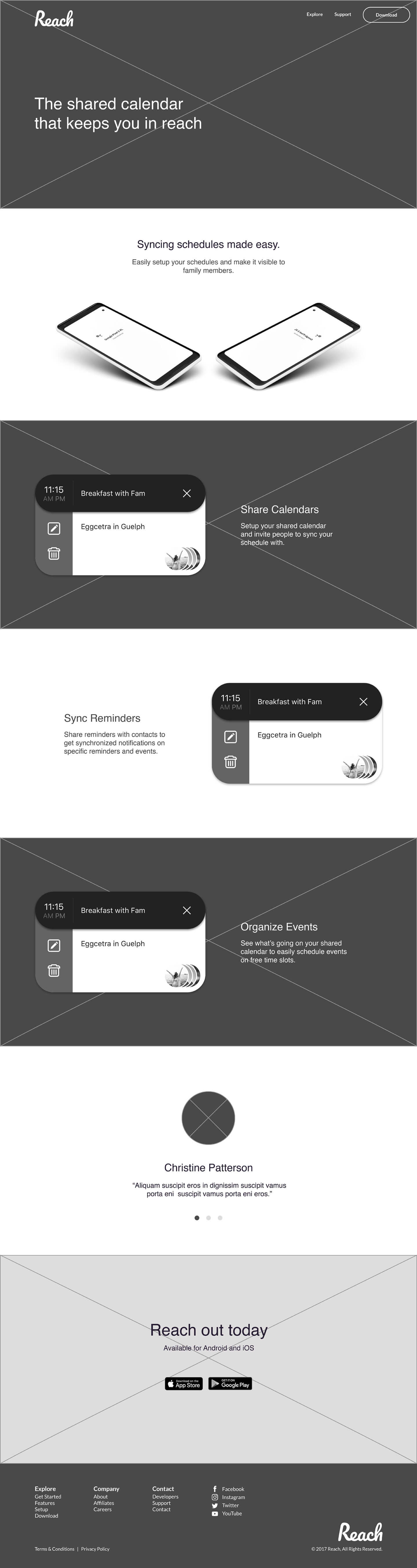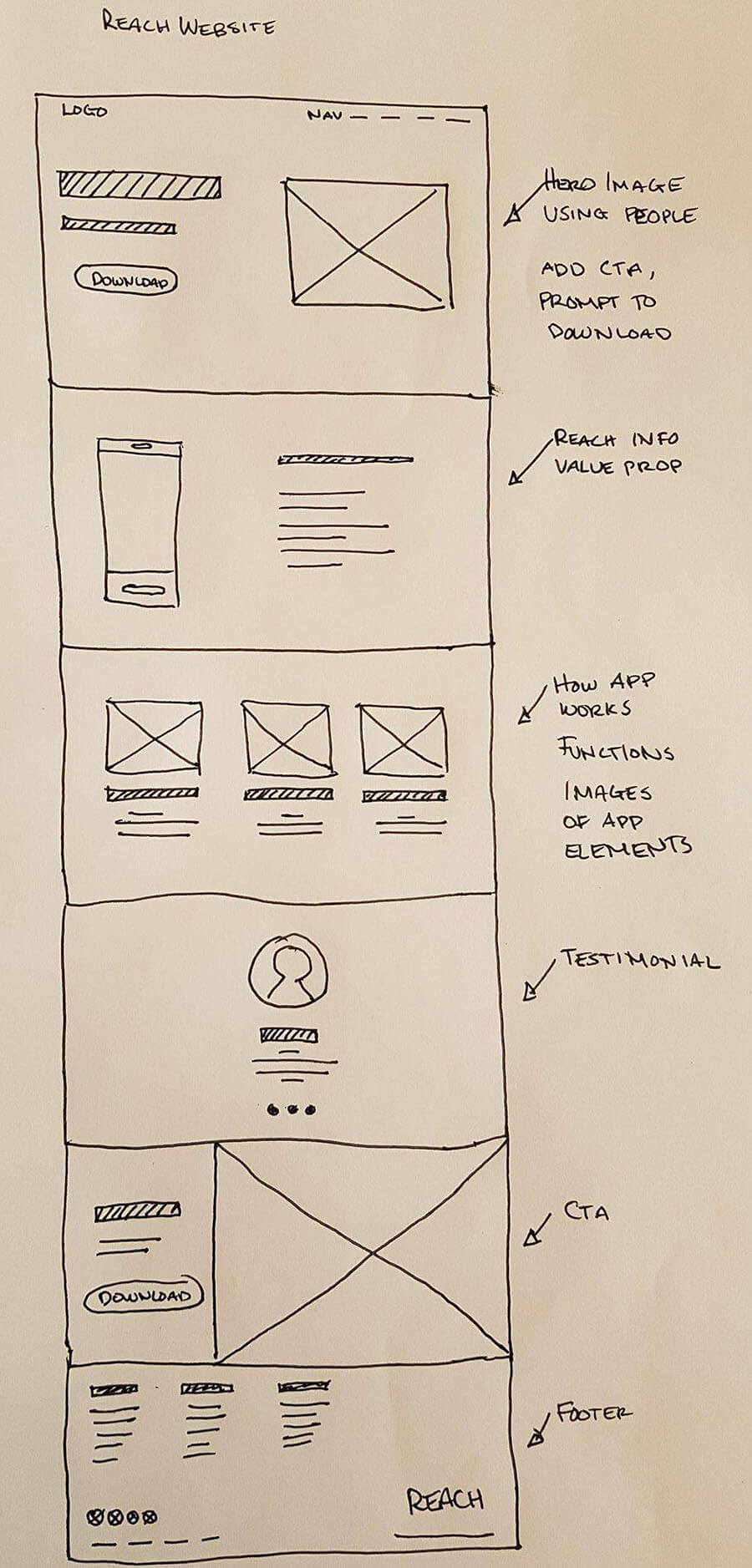 With the wireframes ready, I could start building assets. I didn't want to just use the images as is, I wanted the Reach brand to pop out of the imagery more. To do this I cropped out the backgrounds of the images of people and added the magenta background shown throughout the Reach app.